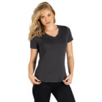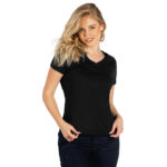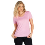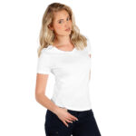 Ženska majica, 160 g/m2, blago strukirana, šivena sa strane, dupli štepovi na rukavima i dnu, štep oko rendera i dodatni štep duž ramena, okovratnik ojačan trakom.